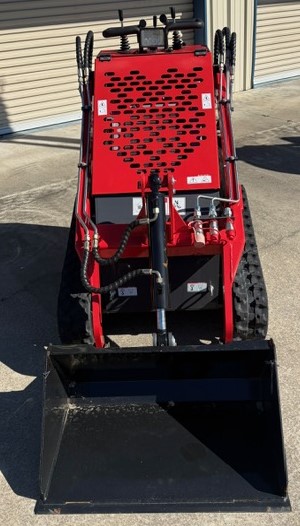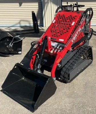 The 2025 AGT YSRT14 mini skid steer is a compact, stand-on track loader designed for use in tight spaces, featuring a 13.5 HP gasoline engine and a maximum lift capacity of 828 lbs. It is compatible with a wide range of standard mini skid steer attachments.