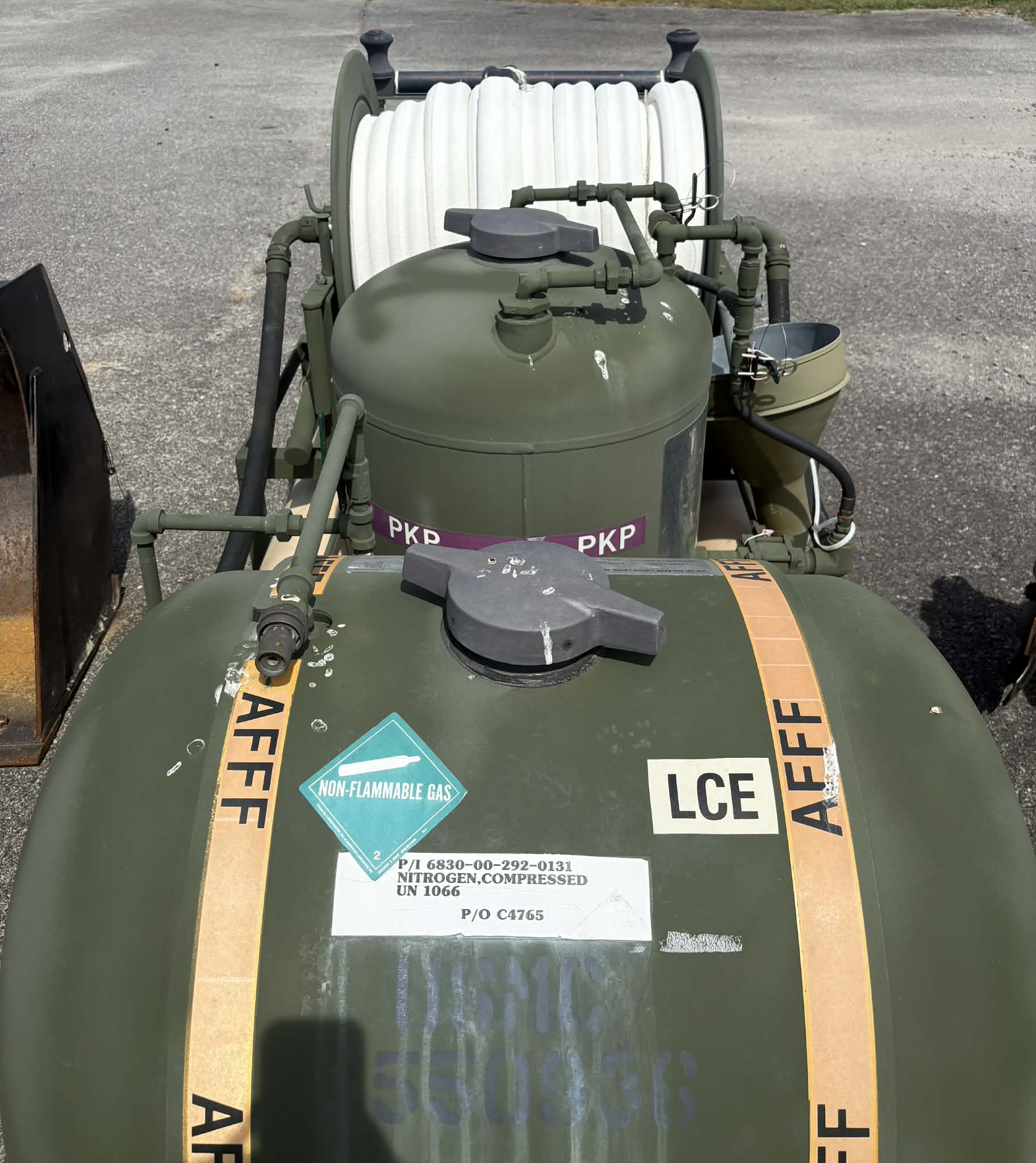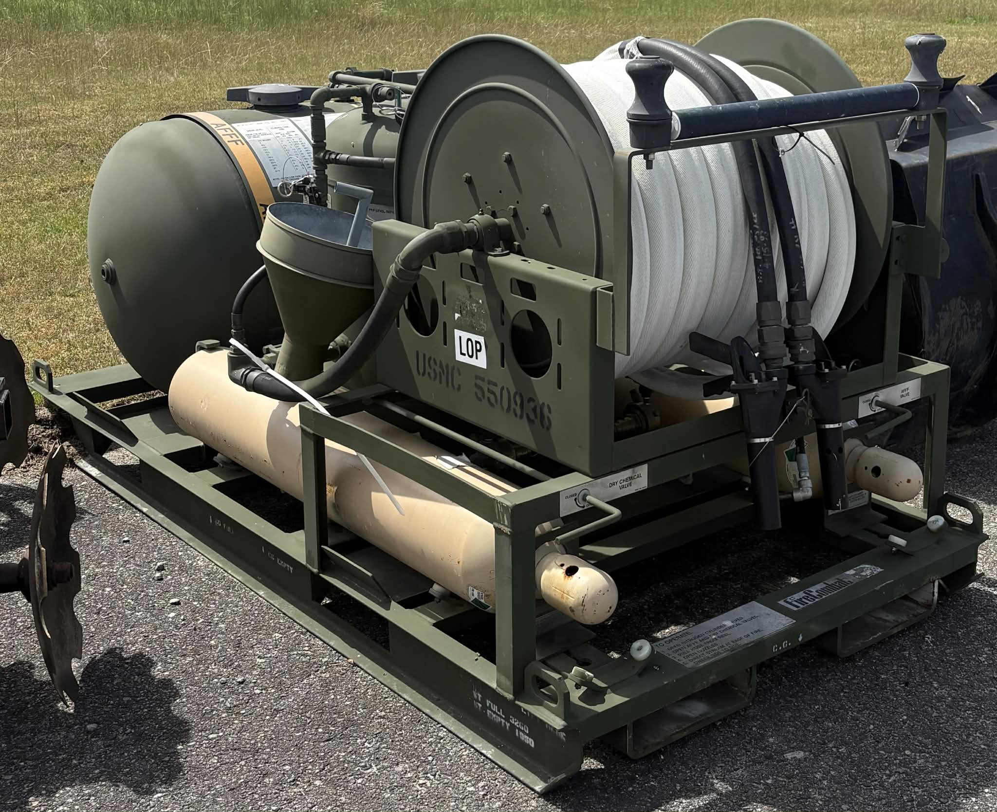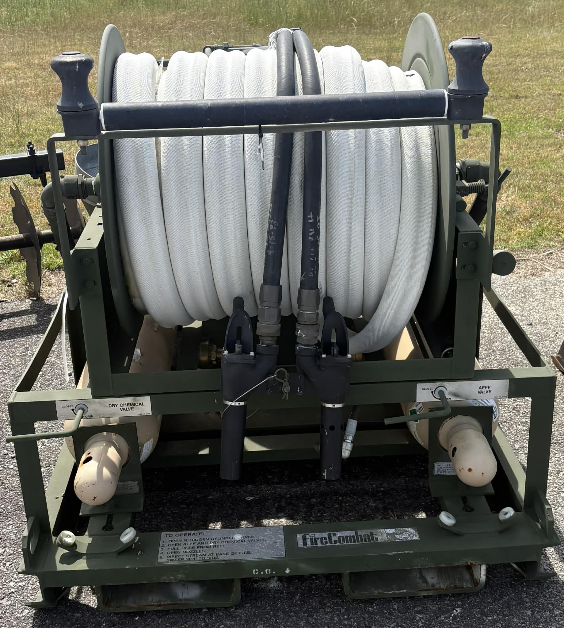 Fire Combat fire suppression system. 300ft of 1 inch hose with nozzle.
