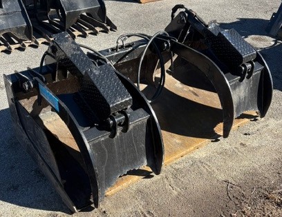 Solid bottom bucket grapples with a quick attach system are a versatile skid steer or compact tractor attachment ideal for handling diverse materials like debris, logs, and rocks, while also allowing for tasks like grading and moving dirt.